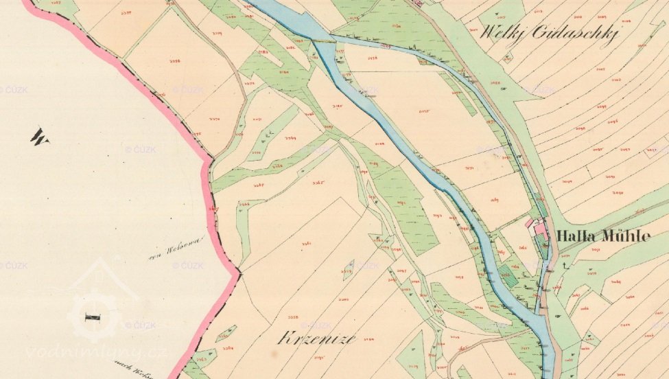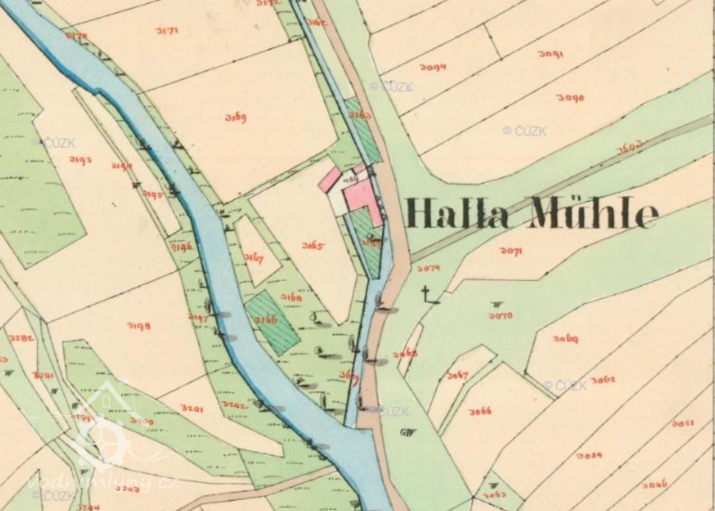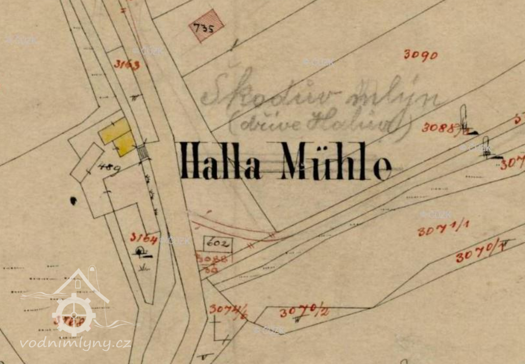 Hálův, Škodův, Chromý, Šlapalův, Kohoutkův mlýn; Hallamühle