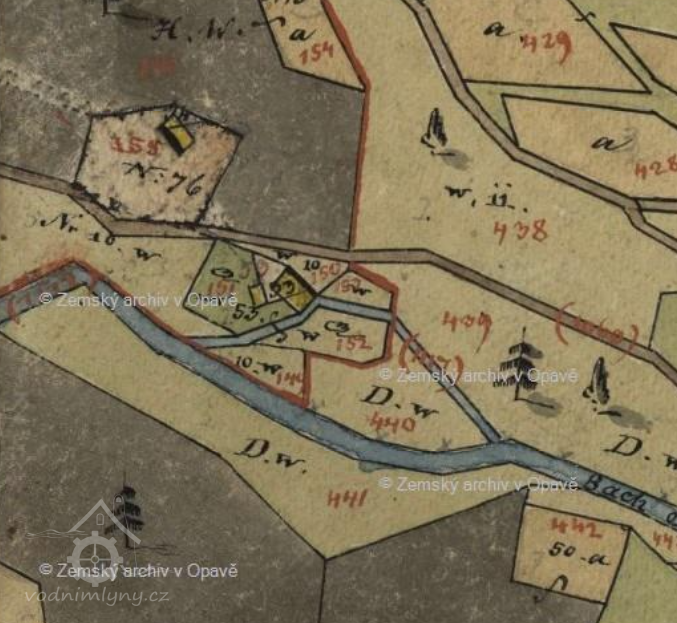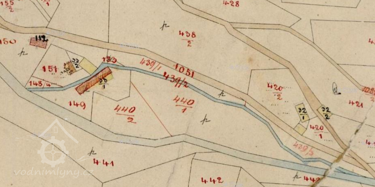 Malý dřevěný mlýn, doložený před pol. 17. stol. Pilnice byla v roce 2014 zbořena.