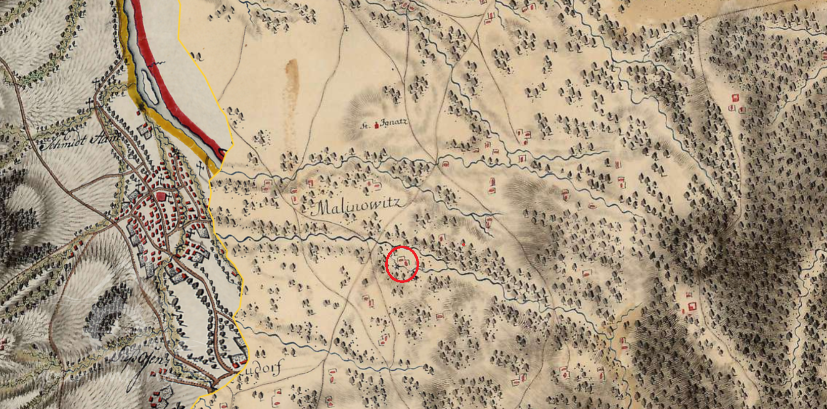 1,2 km jižně od kostela sv. Ignáce z Loyoly v Malenovicích