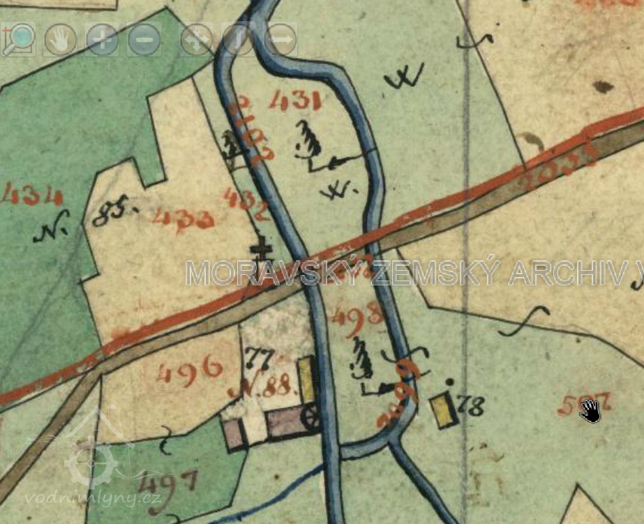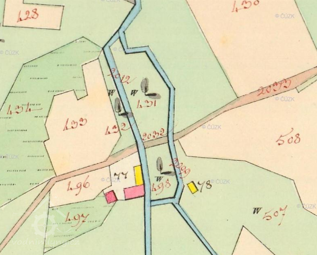 Popis1930: 1 kolo na svrchní vodu, hlltnost 0,48 m3/s, spád 2,5 m, výkon 9,25 HP (6,85 kW)