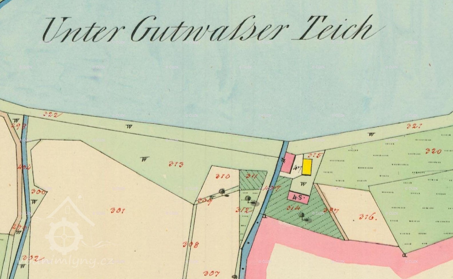 Popis1930: 1 kolo na svrchní vidu, hltnost 0,168 m3/s, spád 4,5 m, výkon 7 HP