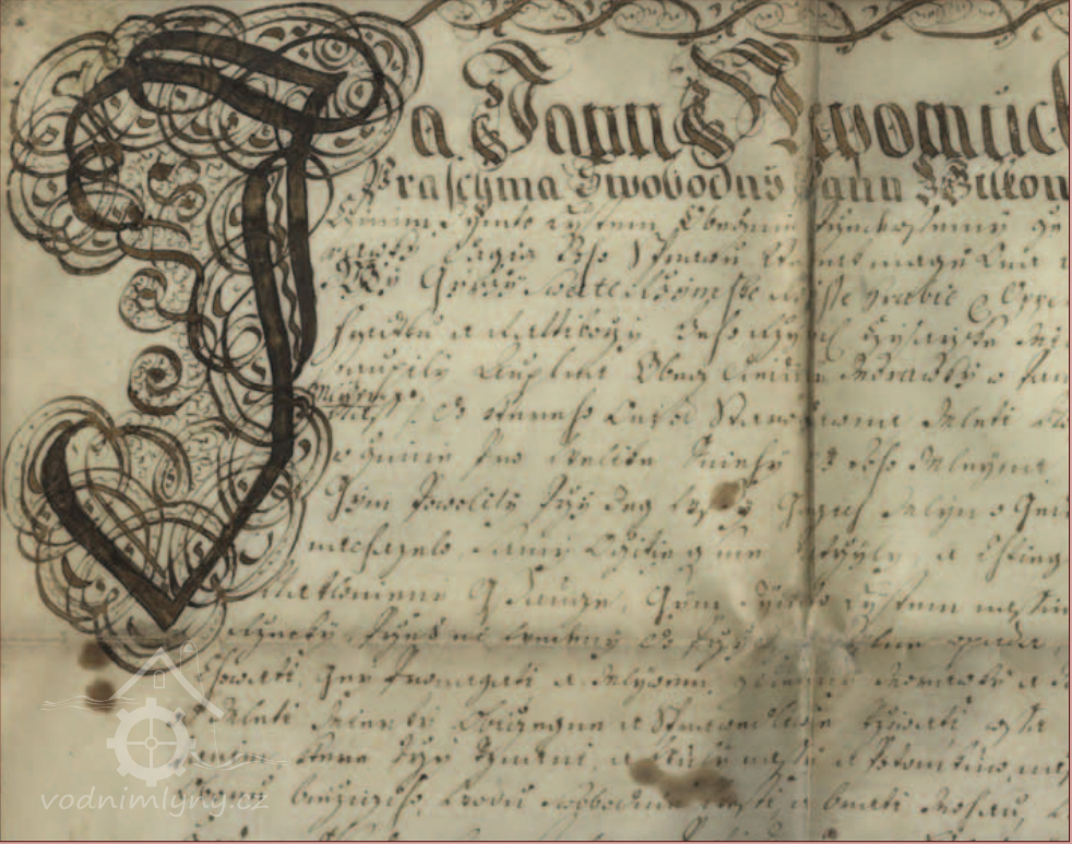 V urbáři panství frýdecko-místeckého z roku 1580 se uvádí: „1650 dne 5. Juli dopustila se postaviti mlejn nad pilou v těch potocích dědičně od kterého ročně dávají platu stáleho na dva termíny 20 zlatých“.