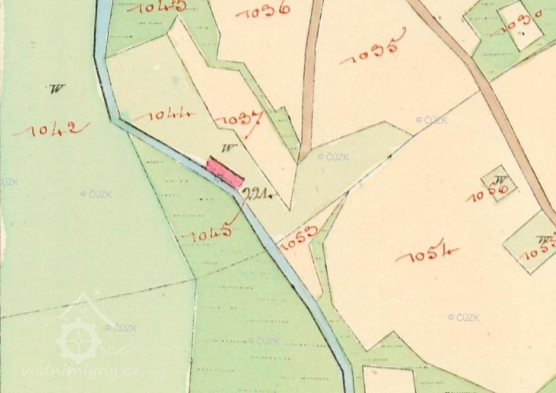 Popis1930: 1 kolo na svrchní vodu, hltnost 0,3 m3/s, spád 3,6 m, výkon 9,3 HP (6,88 HP)