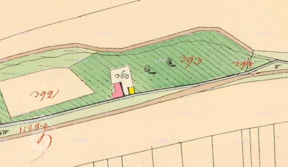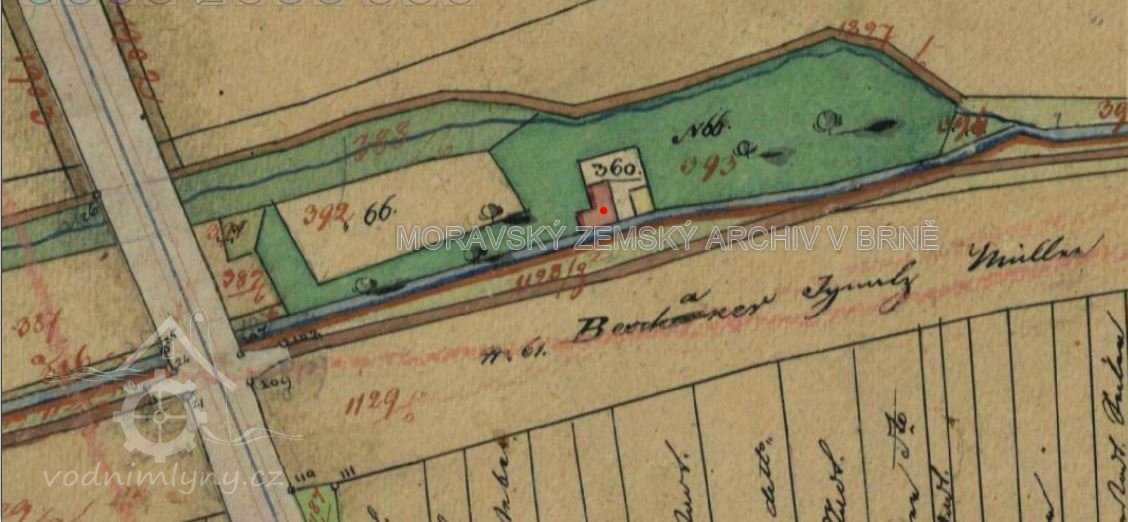 Mlýn uvedený na 2. vojenském mapování. Dnes náhon funguje jako bočník při rozvodněné říčce.