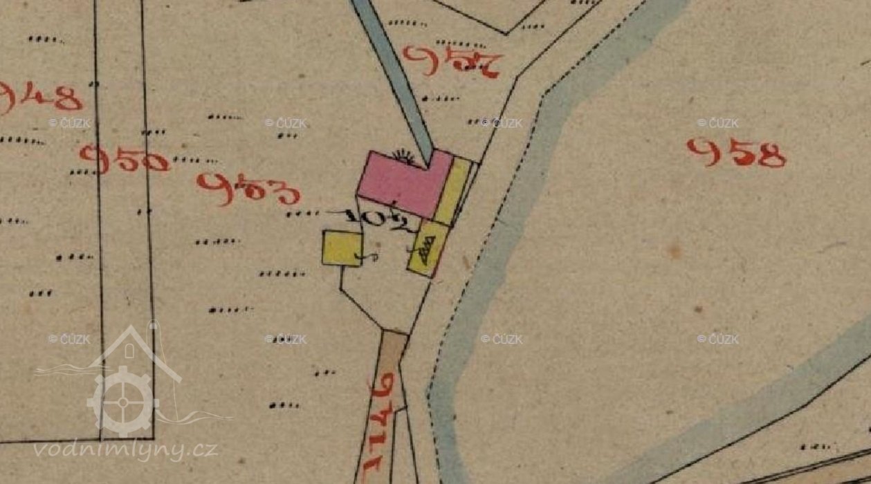Popis1930: 1 kolo na svrchní vodu, hltnost 0,15 m3/s, spád 4,36 m, výkon 5,9 HP