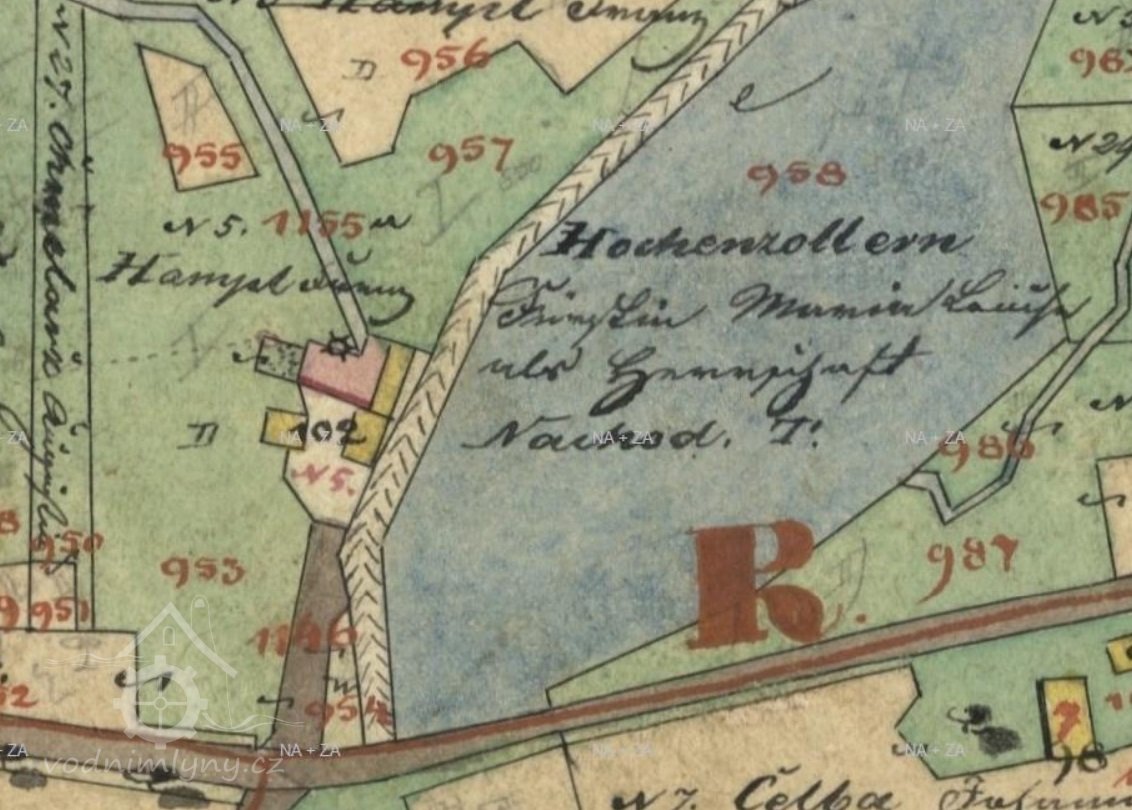 1746 syn Jiří Hampl s manželkou Terezií zakoupil mlýn za 400 zl., odvádí 32 a 1/2 korce obilí výmelného a 4 kapouny, nebo za ně 48 kr., od vrchnosti dostane 2 sáhý dříví a dřevo na žlaby