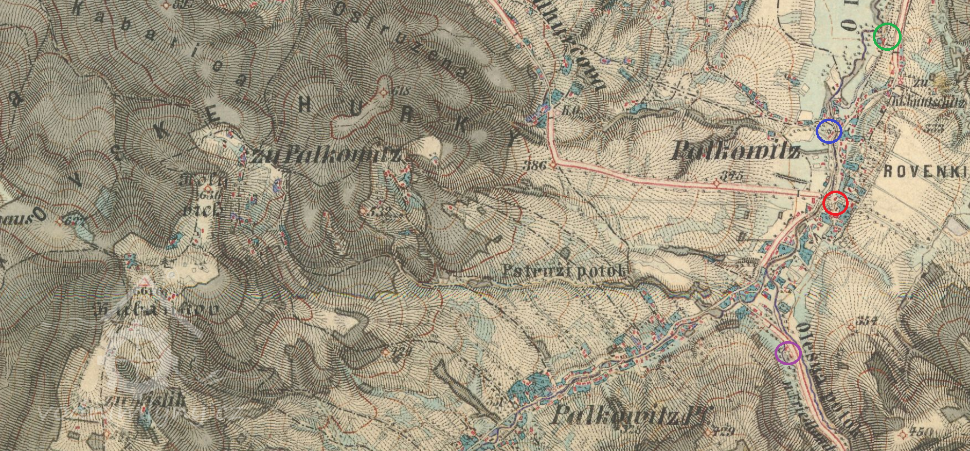 1,2 km severně od kostela sv. Jan Křtitele v Palkovicích