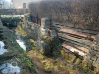 Současný dochovaný náhon čerpá vodu ze vzdálenějšího Byrtusovského potoka a odtok ústí do blízkého Viatrovického potoka. Původní starý mlýn měl ale náhon z řeky Olše a začínal nad starým splavem, který se nedochoval. Stopa po tomto náhonu je v terénu doposud znatelná.
