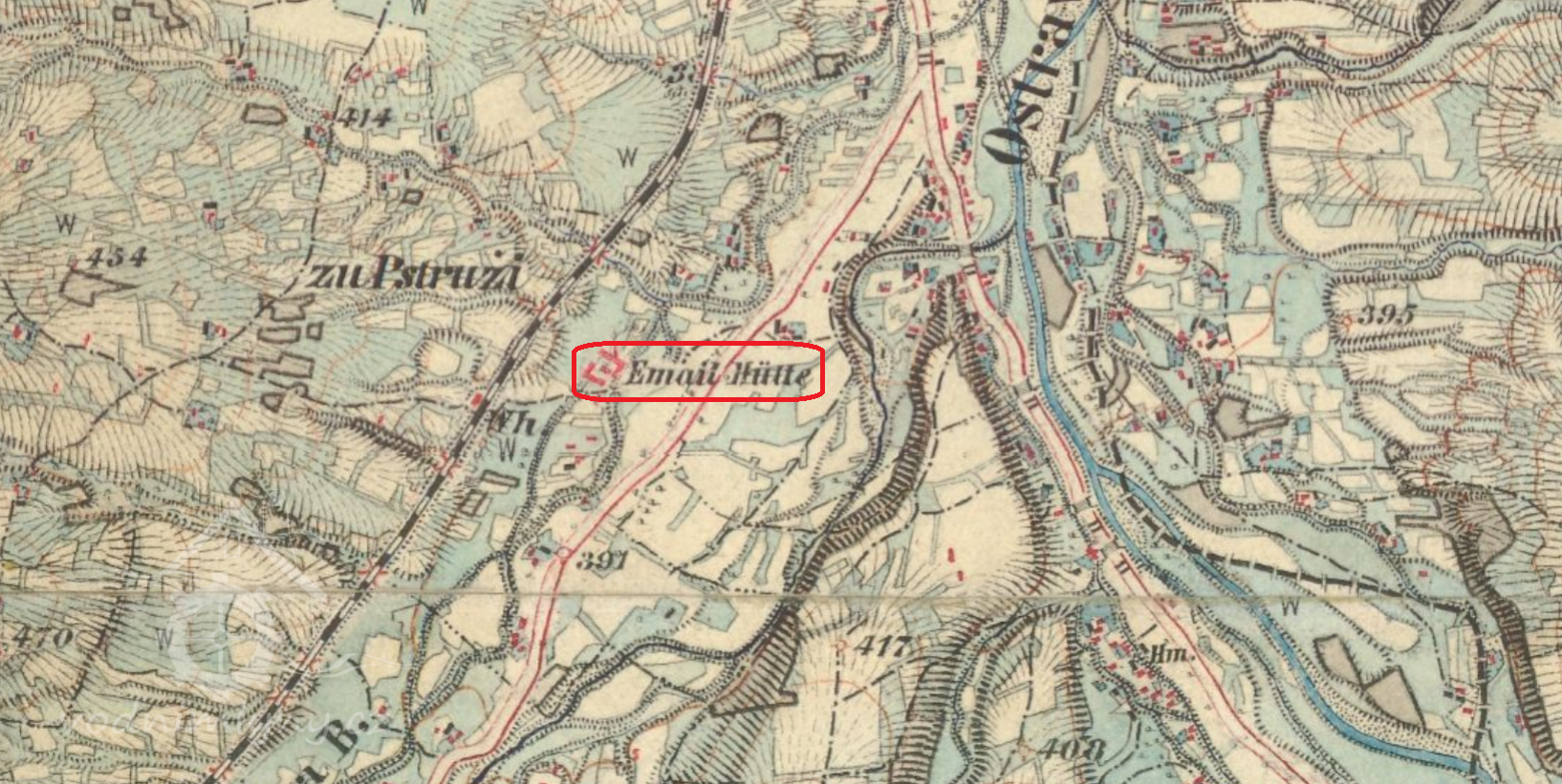 Pstružský mlýn a hamr, smaltovna Postelberg