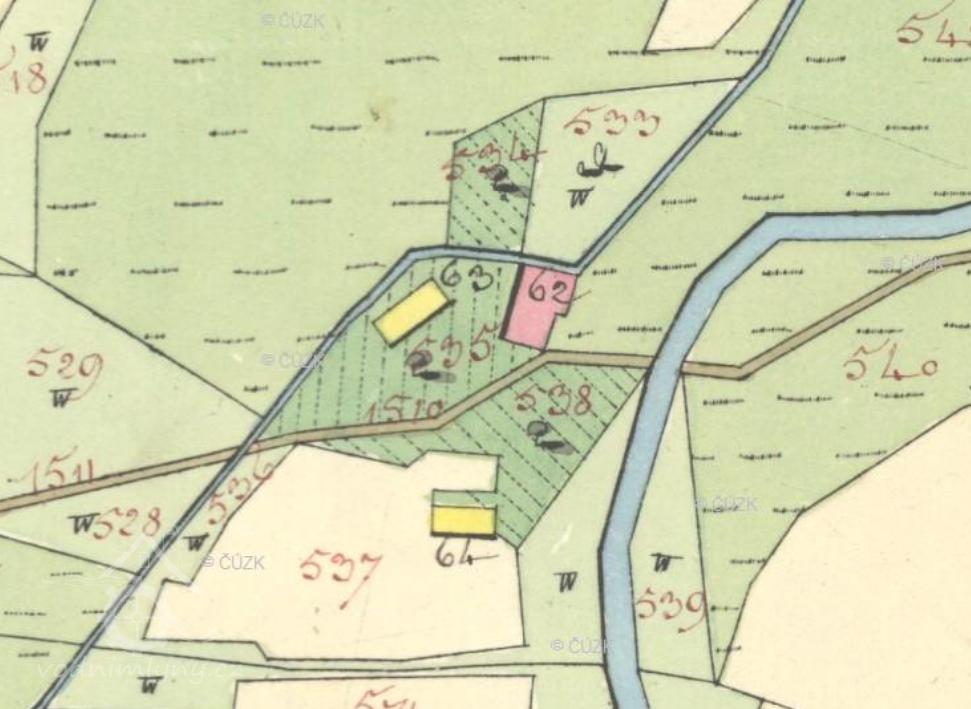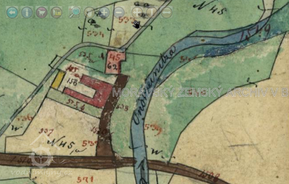 Popis1930: 1 kolo na svrchní vodu, hltnost 0,2 m3/s, spád 3,4 m, výkon 5,8 HP
