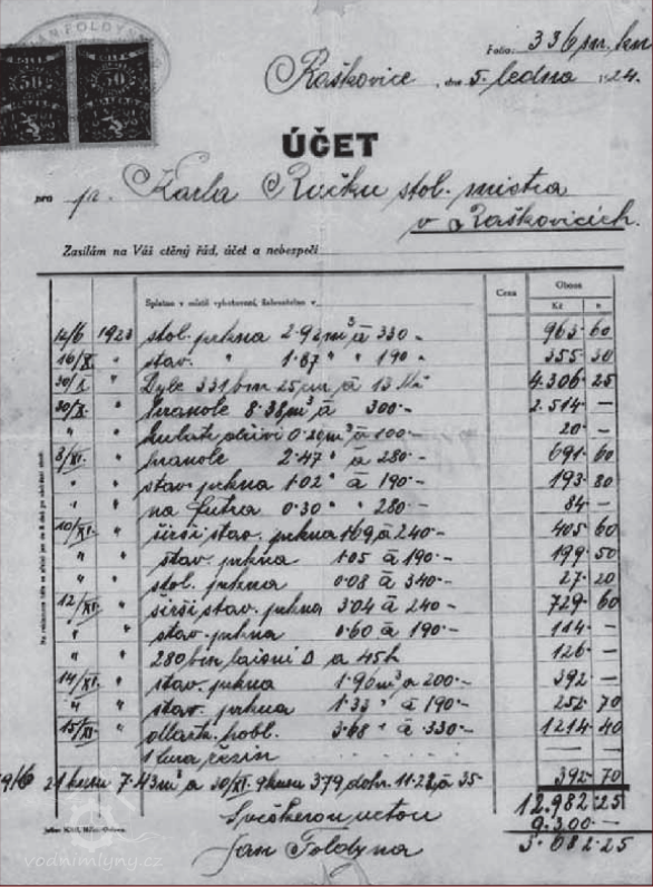 první zděnou pilu v okolí. Ta měla dvě vodní kola, jedno na horní a jedno na spodní vodu. Časem přikoupilii parní stroj a pracovali na kombinovaný provoz. Ve večerních a nočních hodinách byla voda využívána pro pohyb dynama a výrobu elektřiny, kterou byla zásobována nejen pila, ale i tři nejbližší domky.