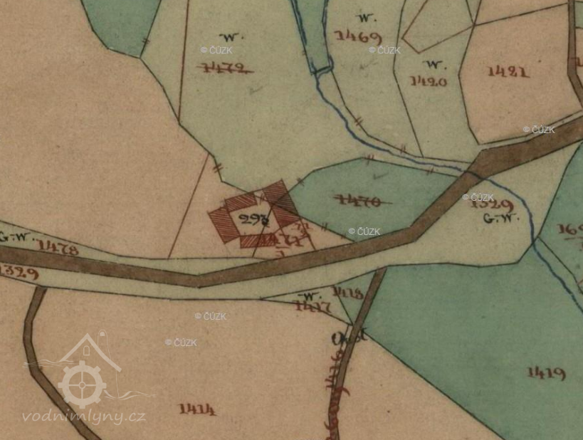 1838 - majitel pozemku Wilht Vogel, mlýn ještě nestál.