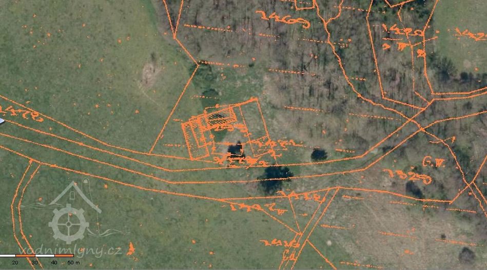 1958 - mlýn zobrazen na mapě leteckého snímkování