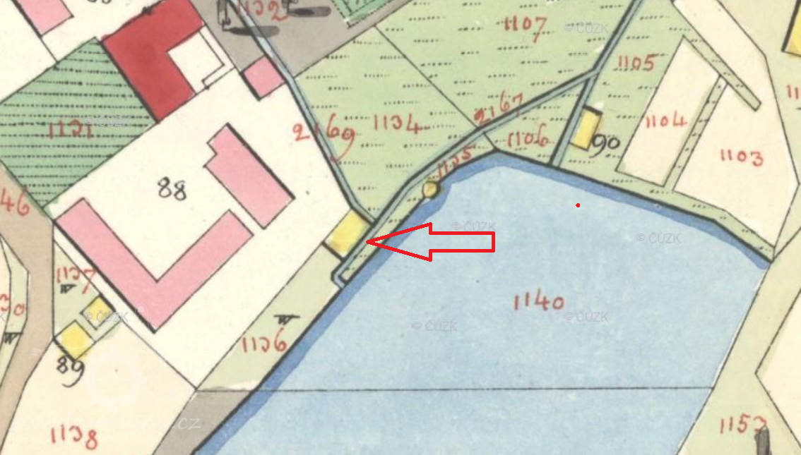 Na leteckém snímku 1937 není patrný.