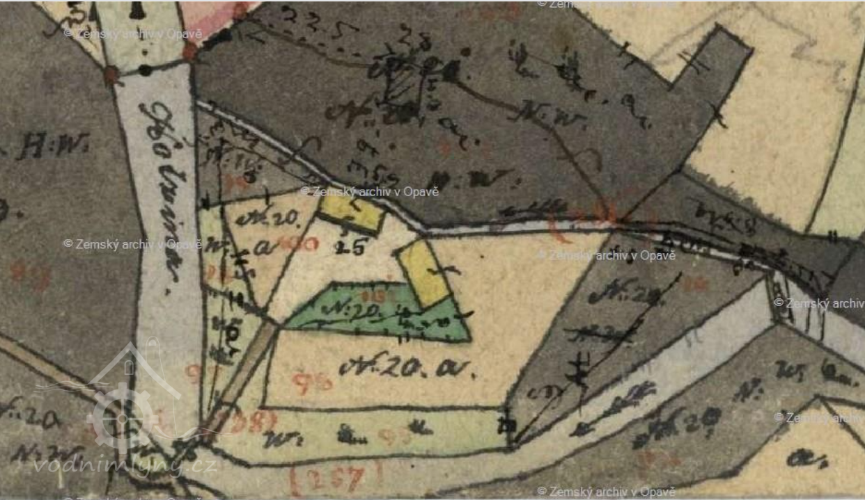 Pravostranný náhon řeky Lučiny (zkrácení meandru řeky) začínal nad větším dřevěným jezem.