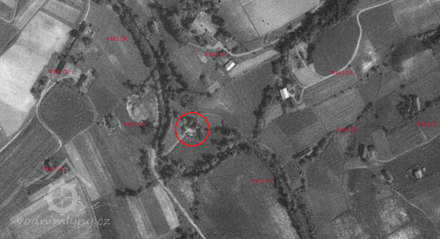 Na leteckém snímku 1950 již není patrný.