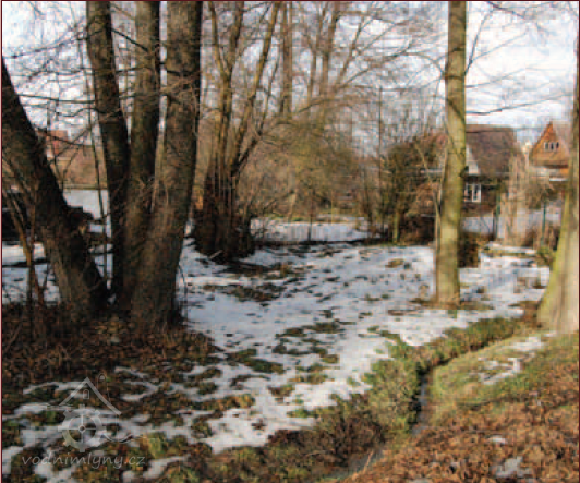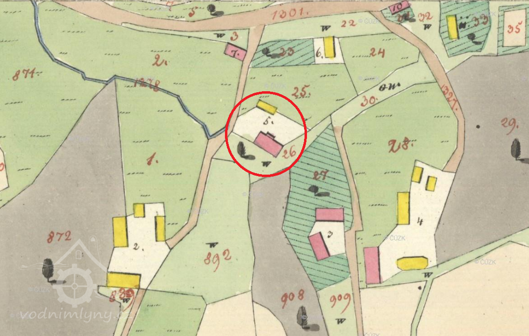 Voda přicházela z Kašparovy nohavice, ale i z Pešatku, z Koksový olšiny a Staňkova chabí a vedla se dvěma náhony.