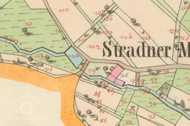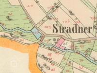1928 - naposledy na mapě 3. vojenského mapování uveden jako Stradner Mühle. Od té doby už je vyznačená jen budova bez popisu.