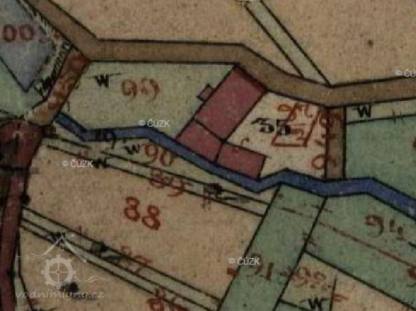 Nad mlýnem se nacházel rybník, z něho vedl náhon.