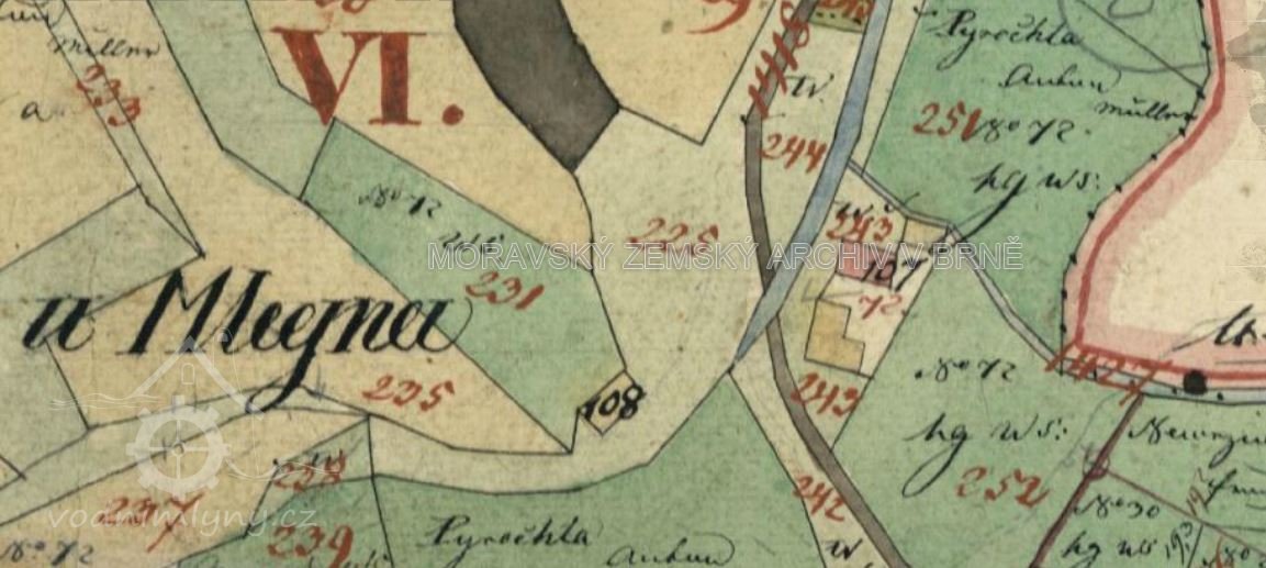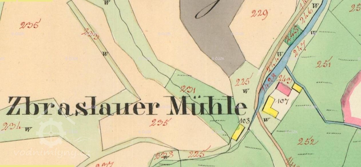 Popis1930: 1 kolo na svrchní vodu, hltnost 0,12 m3/s, spád 4,8 m, výkon 5 HP