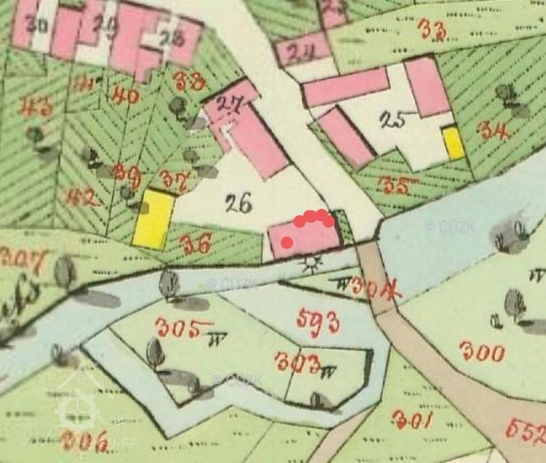 Do dnešní doby se dochovala i kamenná stěna v řece, která byla součástí vodního kola.