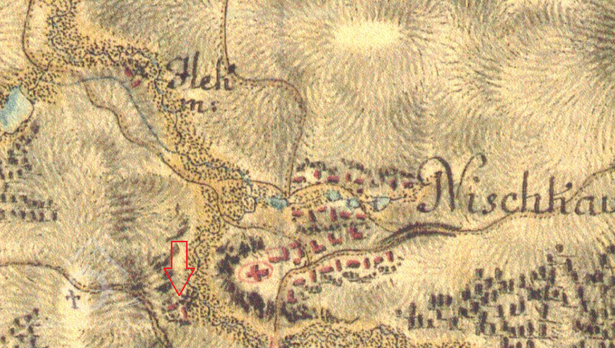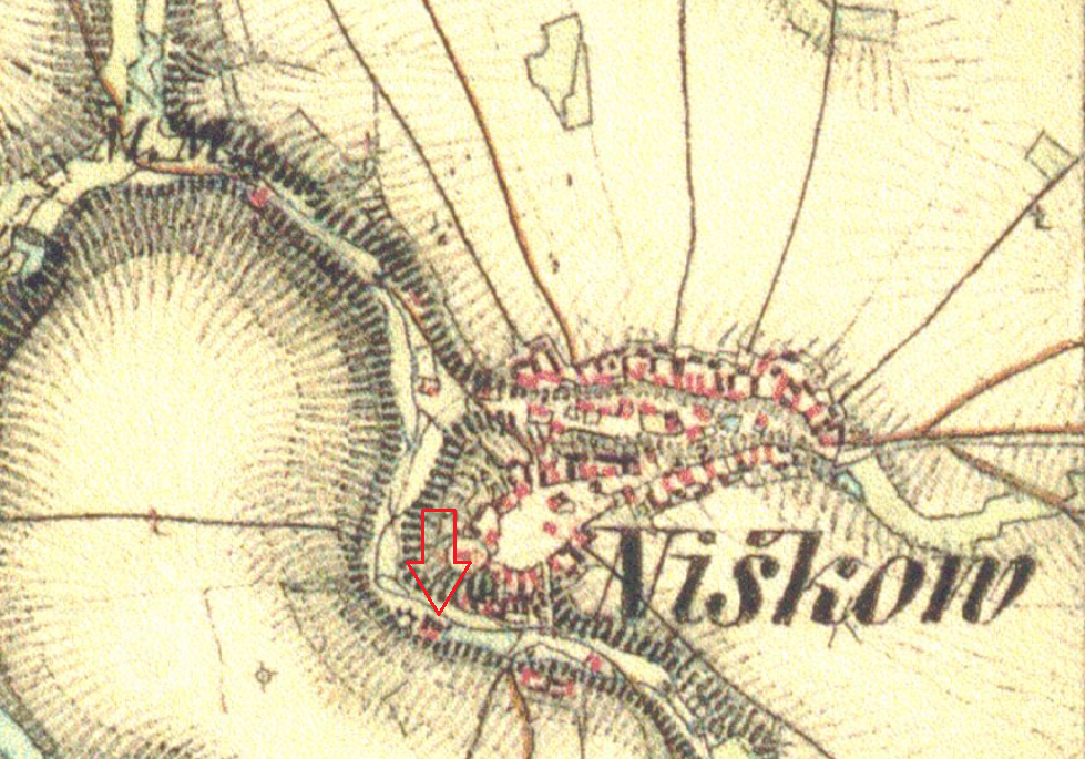 asi 100 m jižně od kostela Sv. Mikuláše, pod kopcem