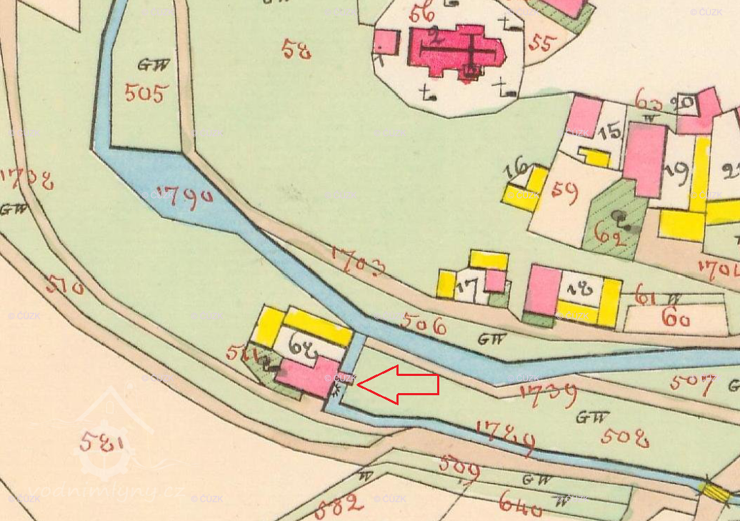 Popis1930 – 1 kolo na vrchní vodu, hltnost 0,09 m3/s, spád 4,1 m, výkon 3,6 HP