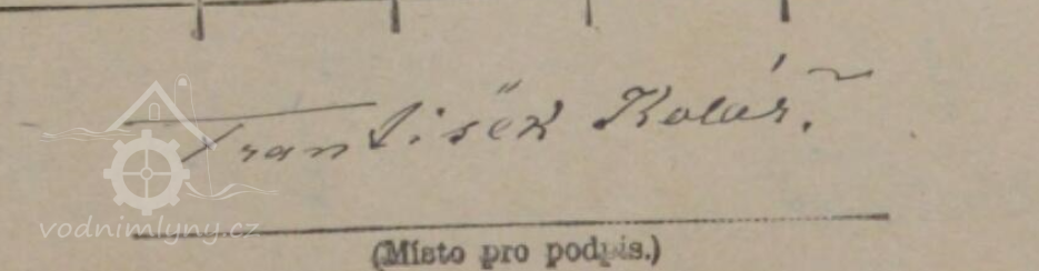 Podle sčítání lidu v roce 1880 byl majitelem mlýna František Kolář (narozen 1842), který sem přišel z Libice nad Doubravou. Jeho hlavní živností bylo mlynářství, vedlejší živností polní hospodářství. Na mlýně s ním žila manželka Kateřina (1839) a děti Božena (1872), Josef (1875) a Jaroslav (1878). V letech 1890 i 1900 zde hospodařil stejný mlynář, avšak již v roce 1890 s druhou manželkou Františkou, rozenou Kadlecovou. Z druhého manželství vzešel syn František (1888) a dcera Marie (1891).
