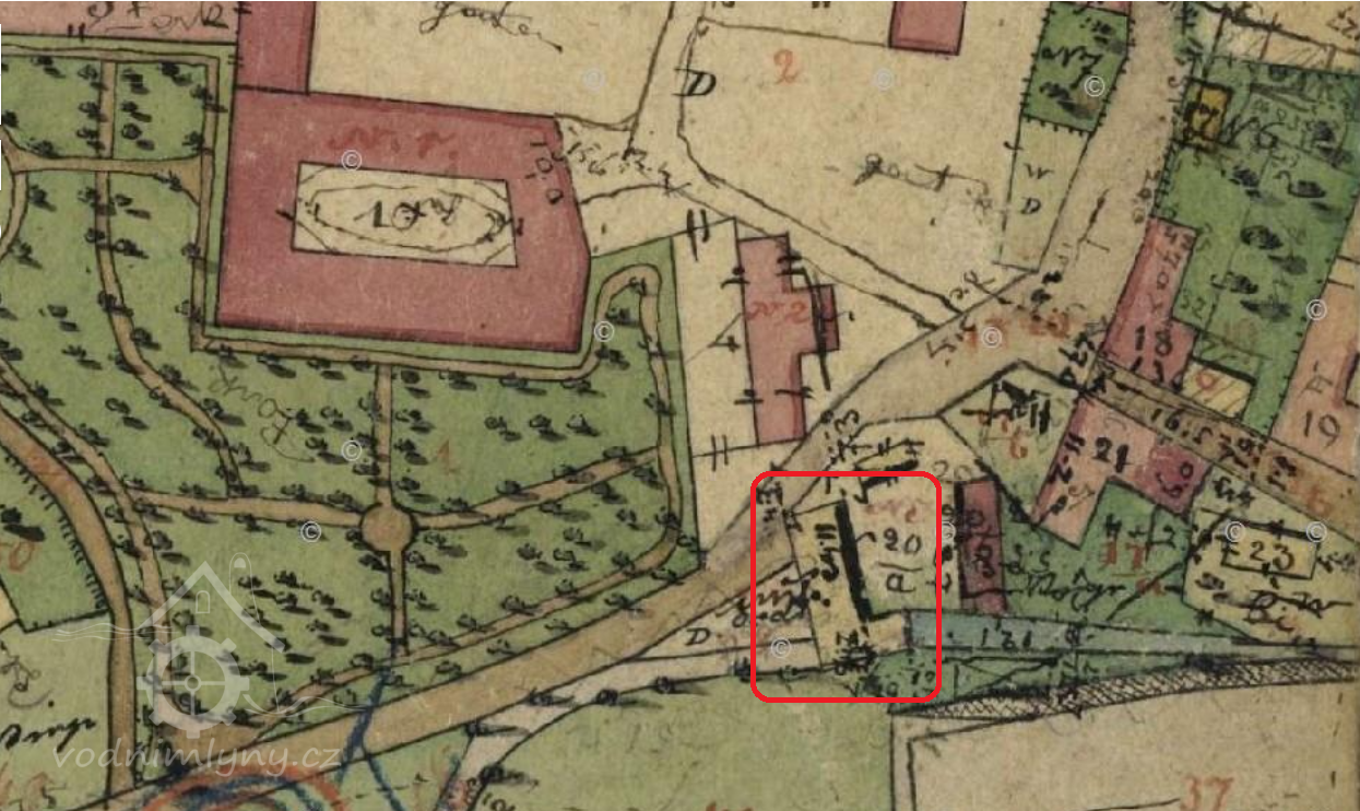 Mlýn stával v jihovýchodním areálu zámku, na místě dnešní kůlny patřící k domu čp. 306 pana Otakara Wünscheho na parcele č. 96.