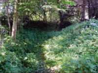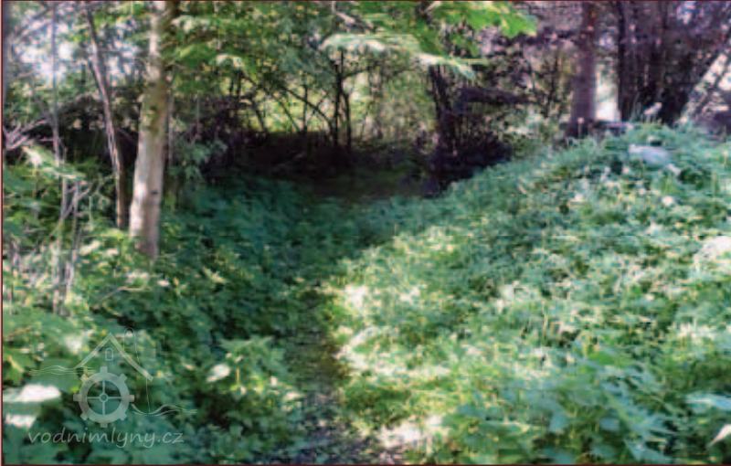Zachován mohutný val na jehož koruně probíhal od jihu náhon (srovnán, vyschlý). Ten je před garáží prudce zakončen. Pod garáží zachována rýha náhonu, která v nezregulované podobě pokračuje dál k severu.