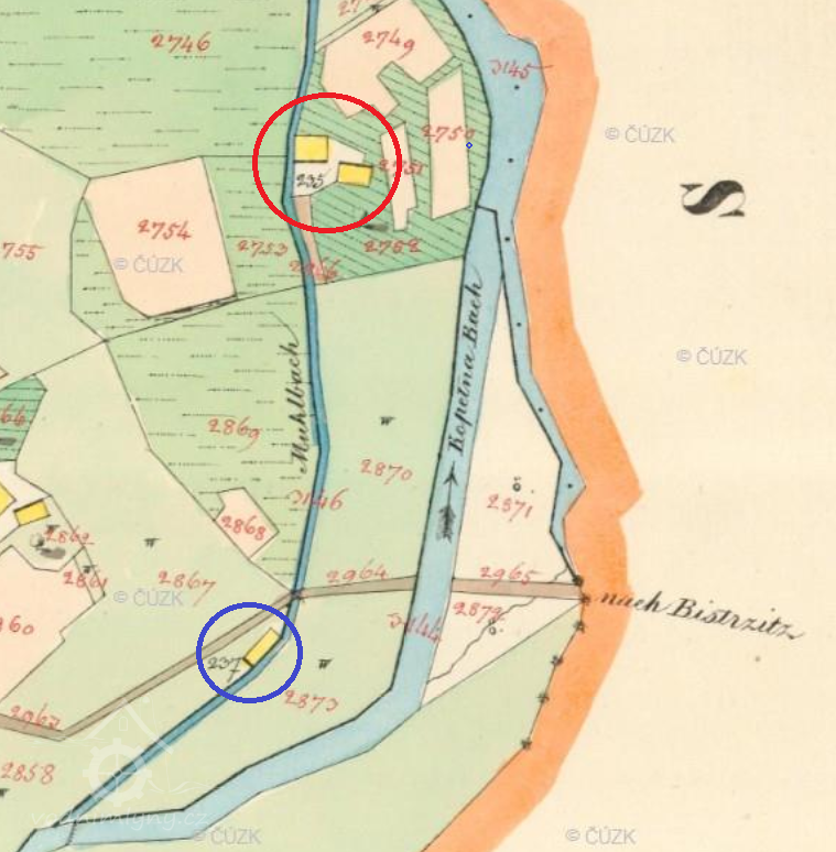 Malý mlýnek, v provozu do roku 1939, na jeho místě dnes stojí garáž. Zachovány zbytky kamenného složení. K mlýny patrně náležela o něco jižněji položená samostatná pila.