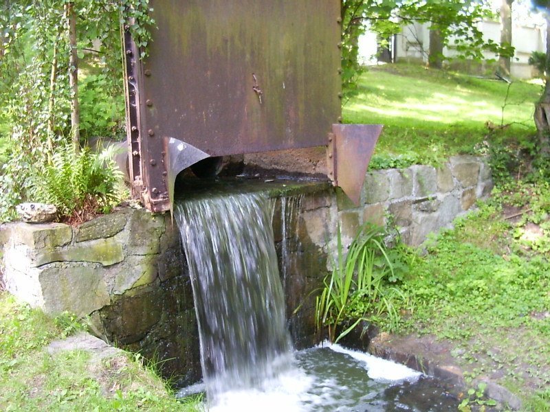 Zbytek potrubí, který byla přiváděna voda na vodní kolo walzwerku, 2009, © https://hs-os-dobris.webgarden.cz