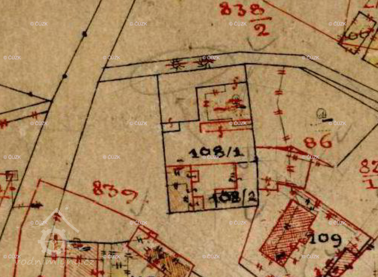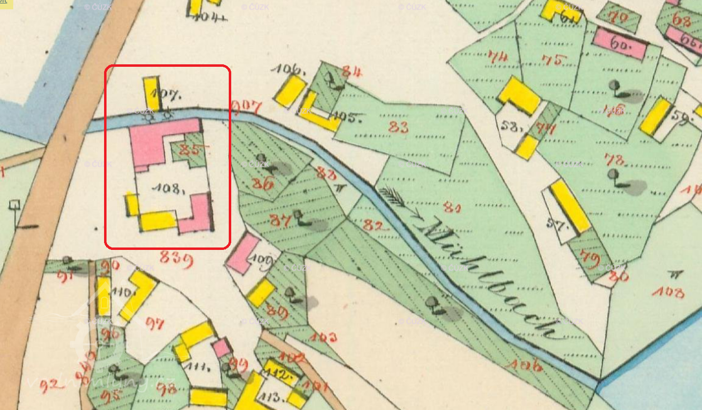 Katastrální mapa evidenční, výřez, 1941, © archivnimapy.cuzk.cz