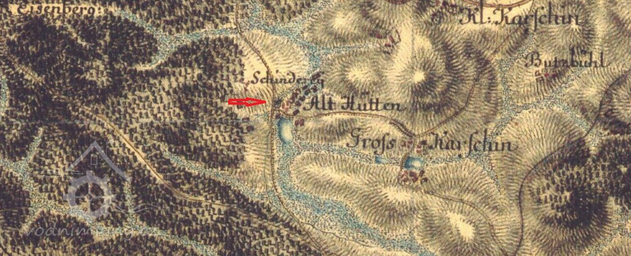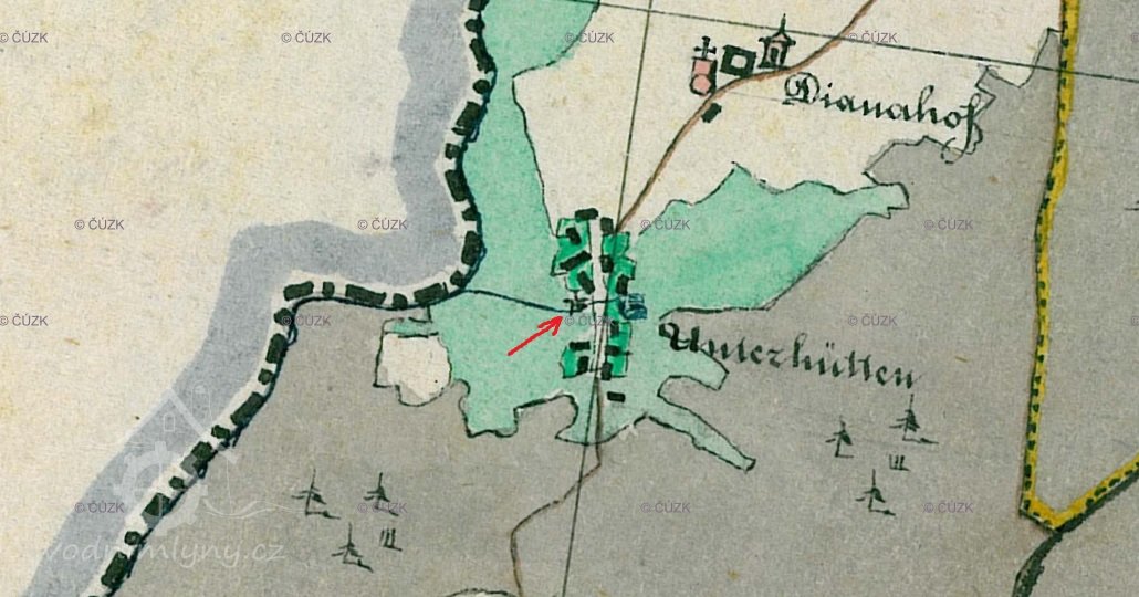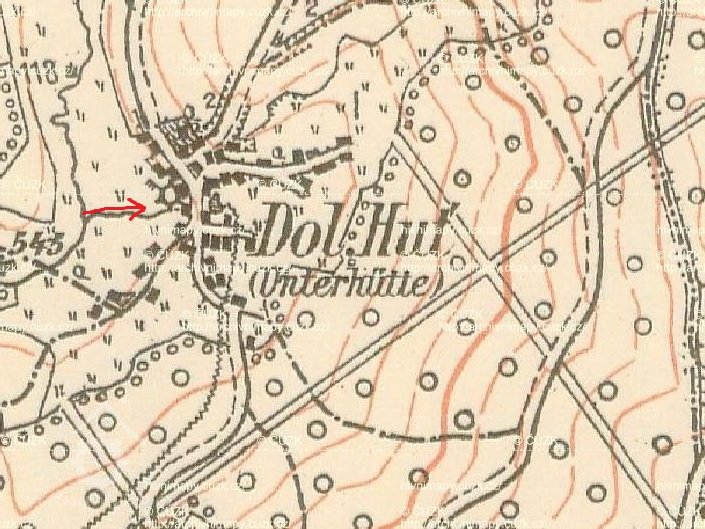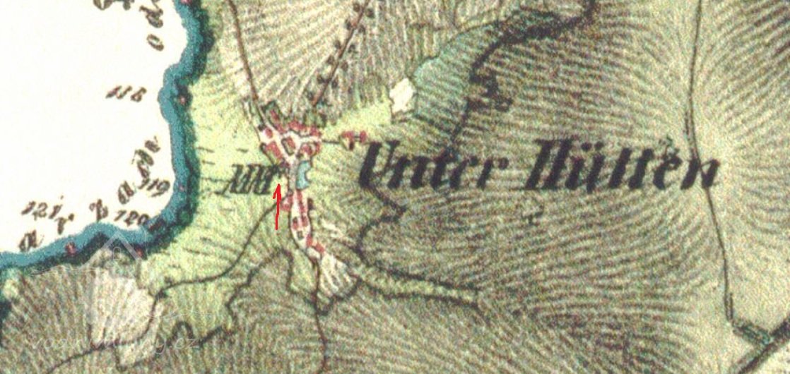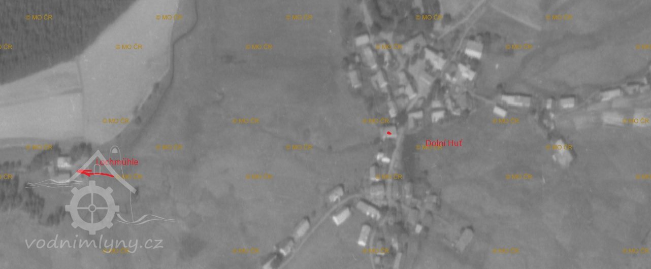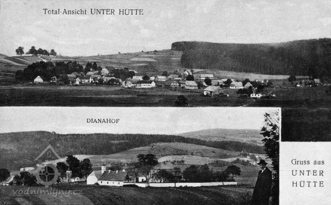 Dolní Huť, mlýn bude v pravé části, 1. polovina 20. století, © autor neznámý