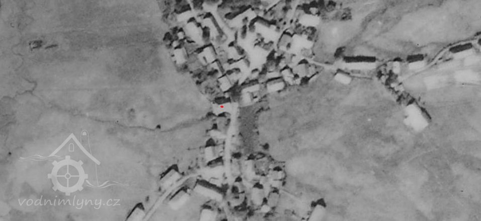 Pohled na obec, mlýn by mohl být stavba při spodním okraji, 1. polovina 20. století, © autor neznámý