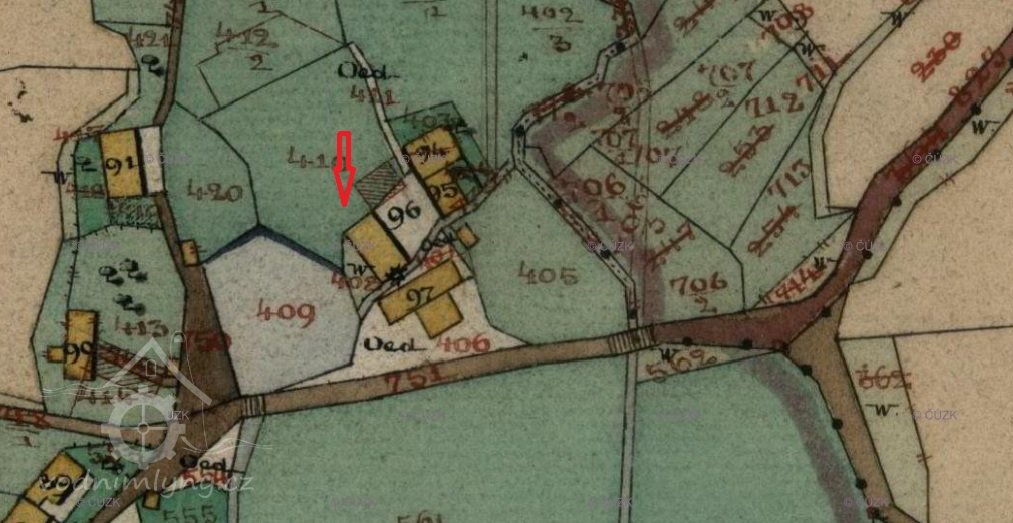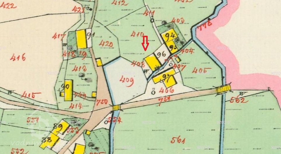 Indikační skica, výřez, 1838, © http://archivnimapy.cuzk.cz.