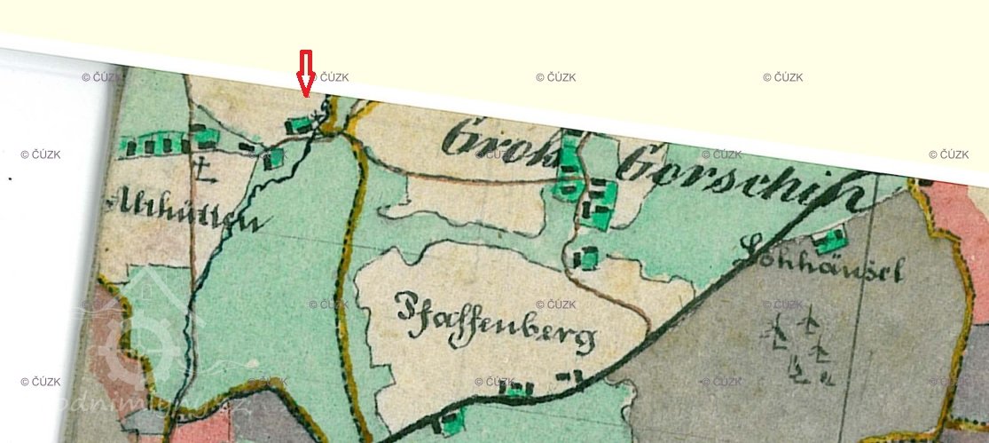 Originální mapy stabilního katastru Čech, výřez, 1838, © http://archivnimapy.cuzk.cz