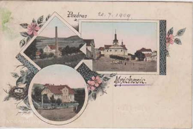 Okénková pohlednice Mnichovic, 1910, © aukro.cz