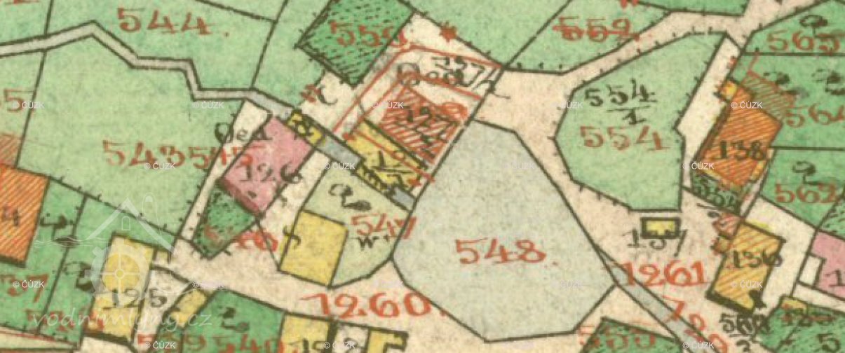 Mapa kultur stabilního katastru, výřez, 1834 - 1844, © http://archivnimapy.cuzk.cz