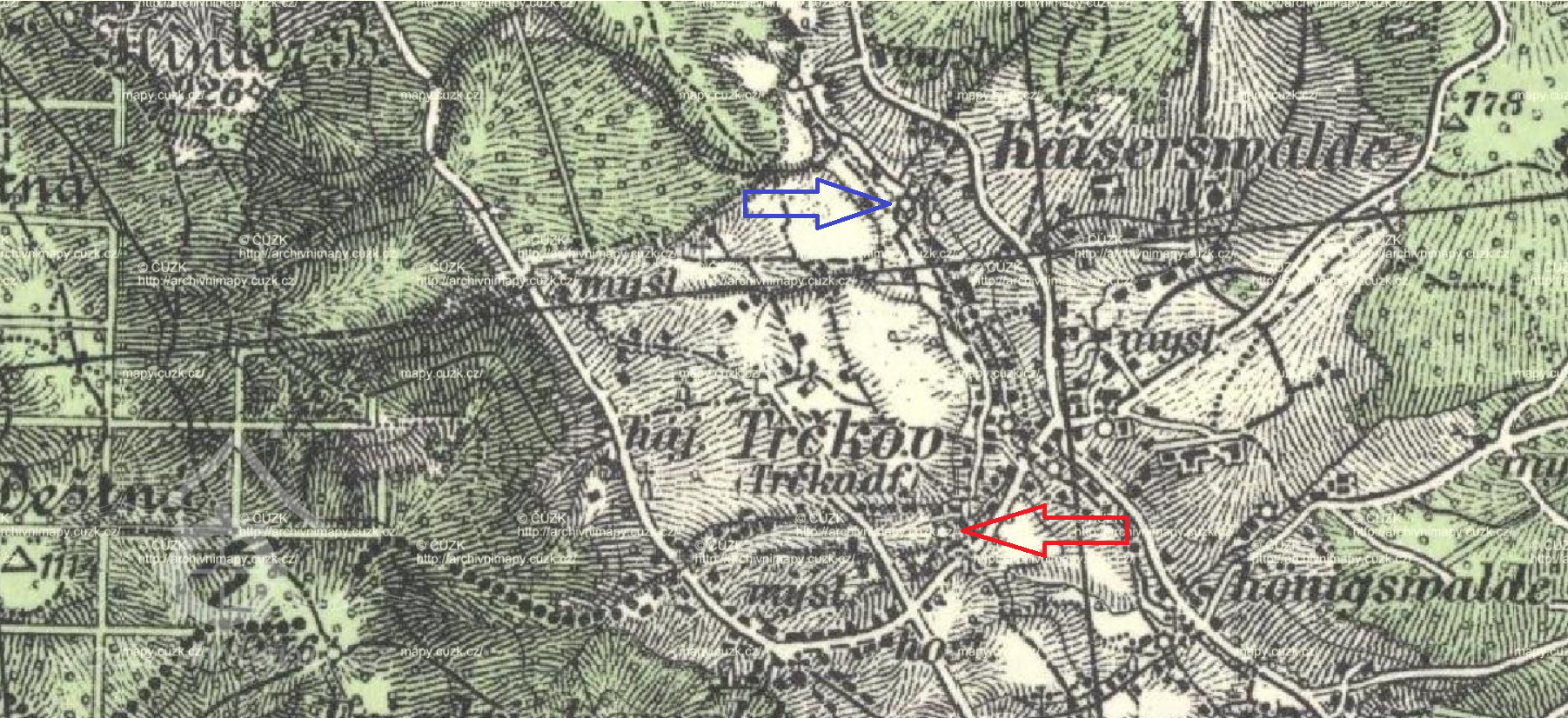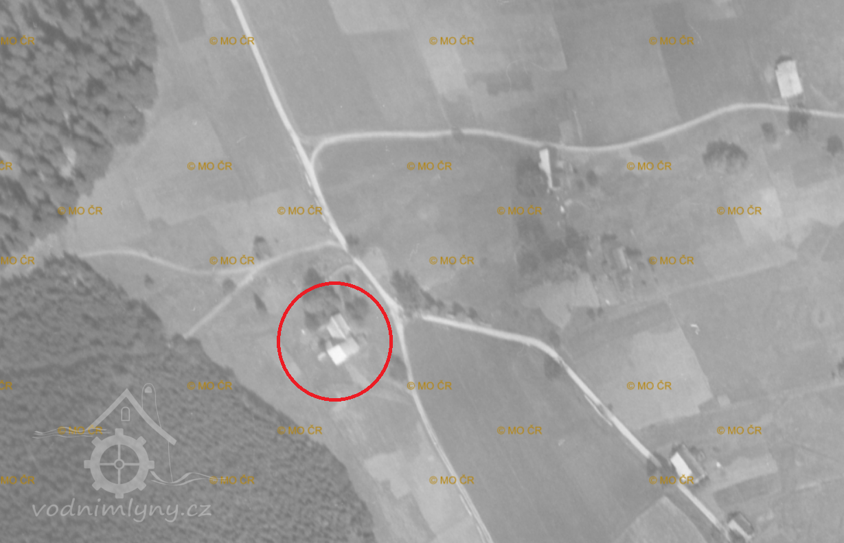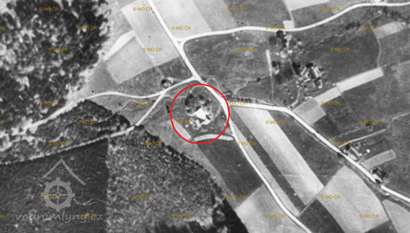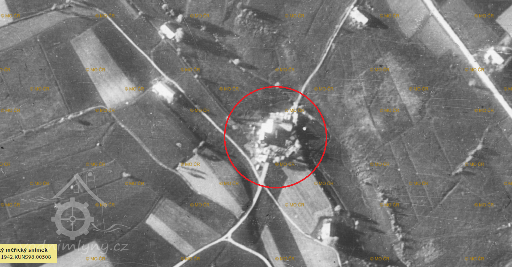 Letecký měřický snímek, výřez, 1942, © lms.cuzk.cz