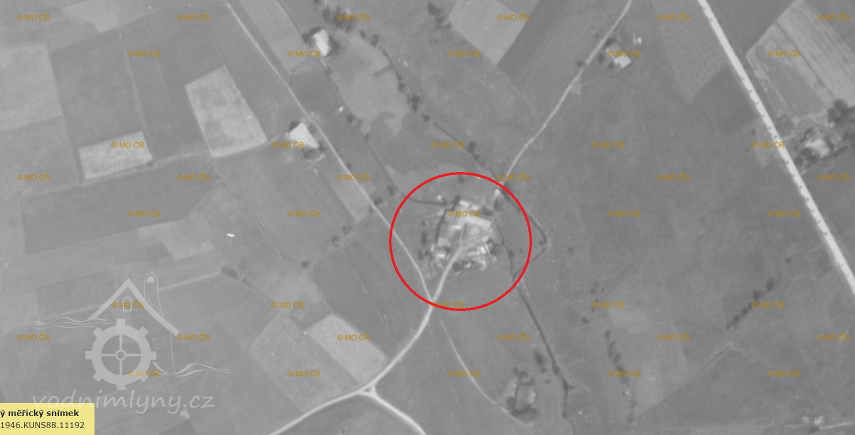 Letecký měřický snímek, výřez, 1946, © lms.cuzk.cz