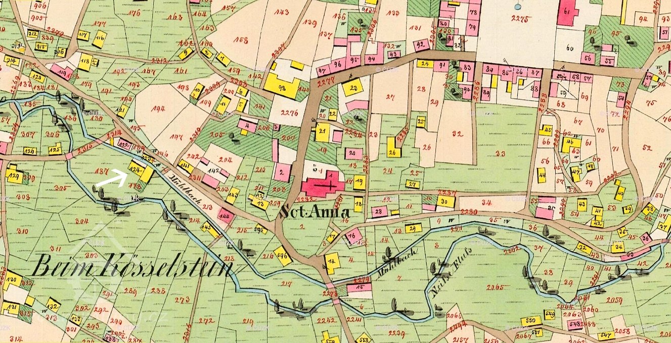 Katastrální mapa, 1843, © archivnimapy.cuzk.cz