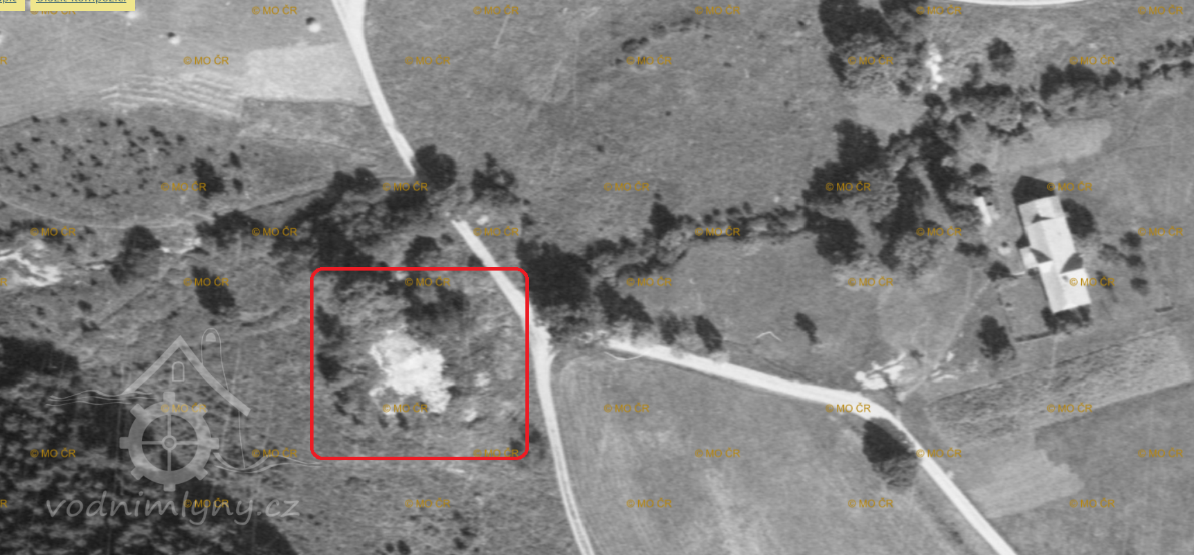 Letecký měřický snímek, výřez, 1961, © lms.cuzk.cz