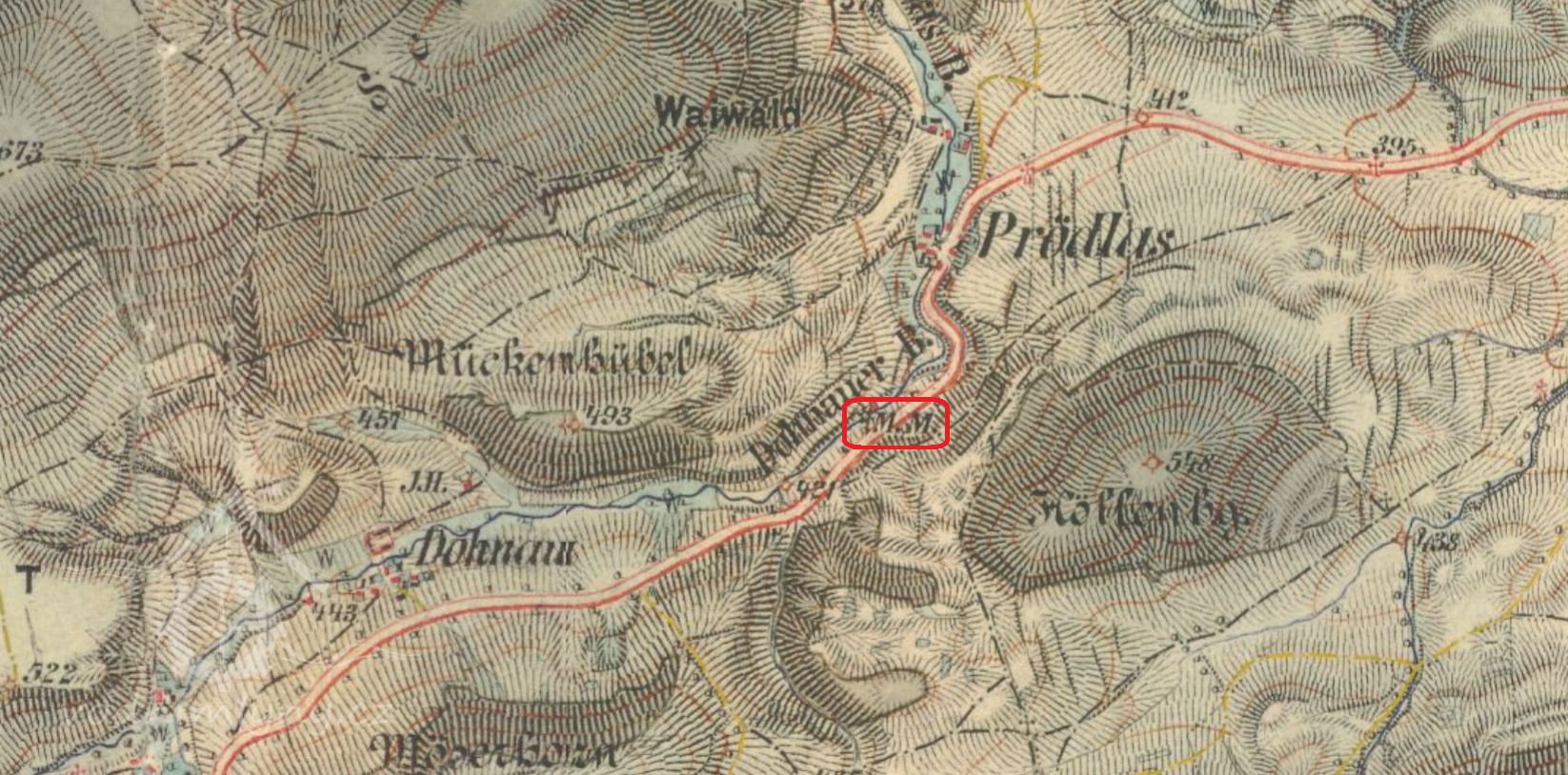 II. vojenské mapování, výřez, 1836-1852, © maps.arcanum.com