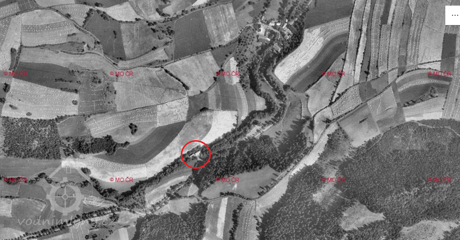 Letecký měřický snímek, výřez, 1956, © ags.cuzk.cz/archiv