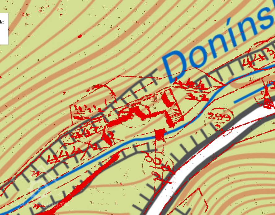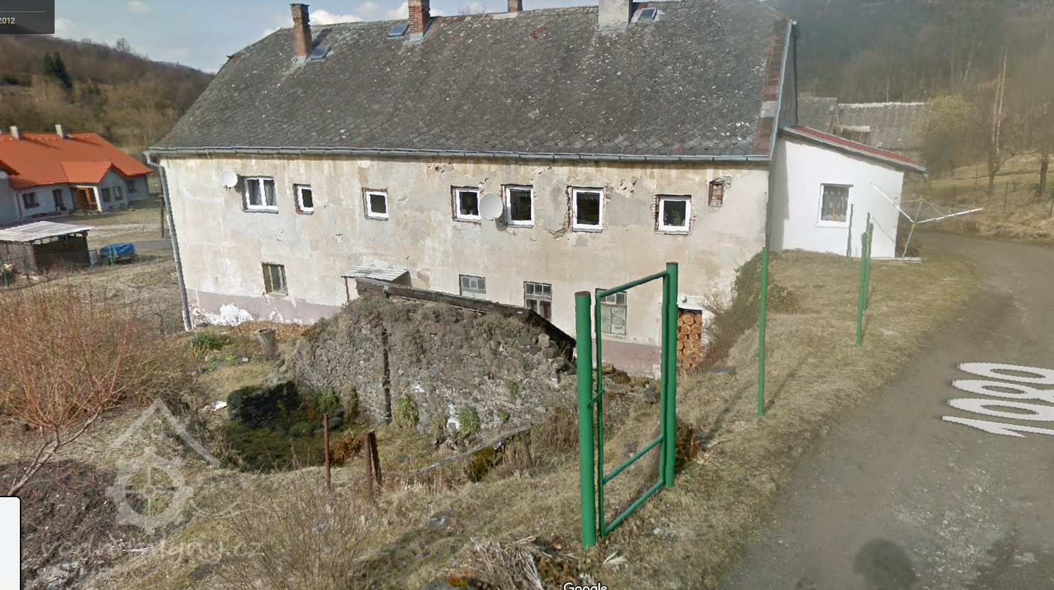 Detail zbytků lednice, 03 2012, © google.maps, (Prvky na obrázku: náhon, lednice)