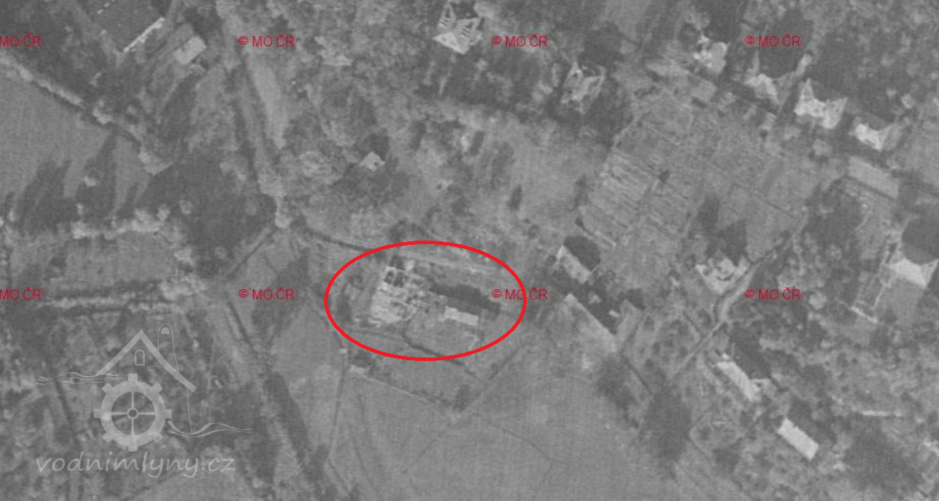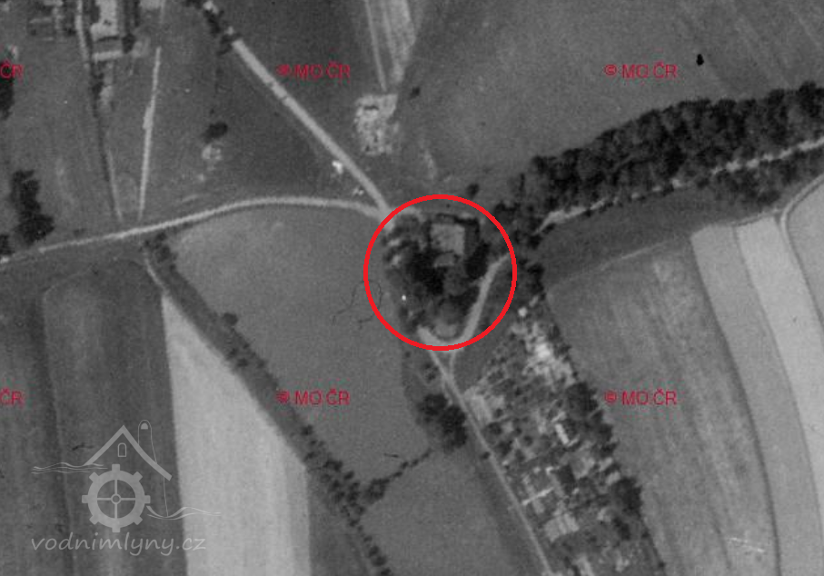 Letecký měřický snímek, výřez, 1950, © ags.cuzk.cz/archiv