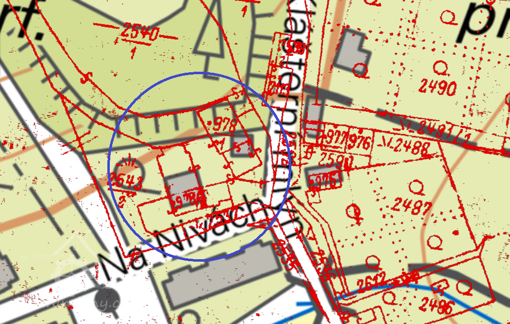 Letecký měřický snímek, výřez, 1957, © ags.cuzk.cz/archiv
