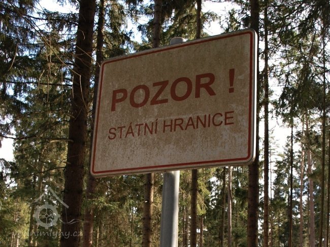 Hraniční cedule u mlýna, 04 2013, © Marie Lárová