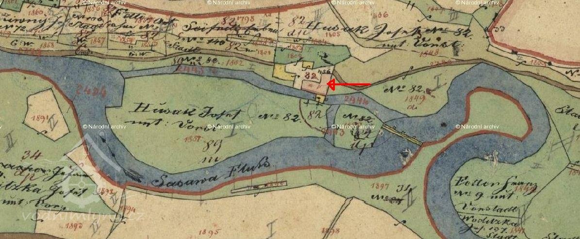 Indikační skica, výřez, 1838, © viz archivnimapy.cuzk.cz